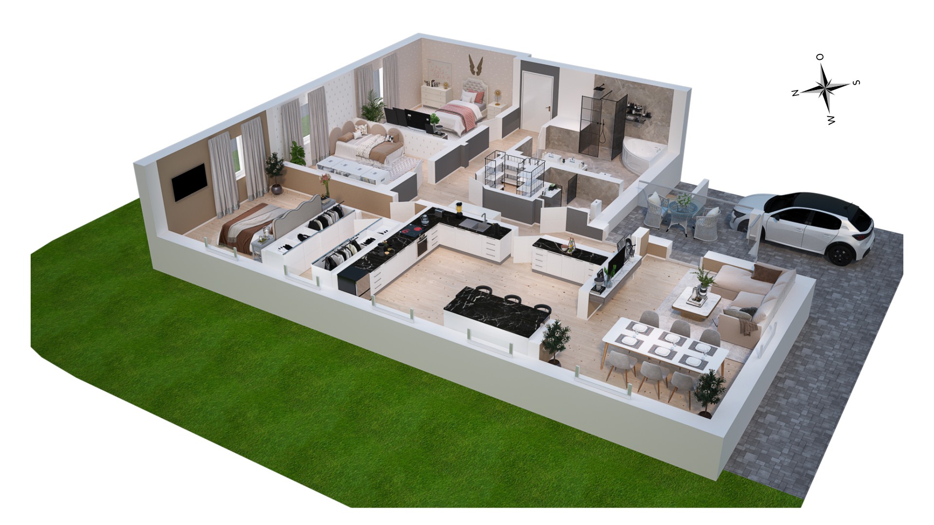 Ein weiteres Highlight ist die Designküche von Nobilia, welche mit Miele Dampfgarer, Backofen und Mikrowelle ausgestattet ist. Eine mittig im Raum positionierte Kochinsel verfügt nicht nur über weiteren Stauraum sondern auch über das Siemens Induktionskochfeld mit elektrisch versenkbarer Tischhaube.